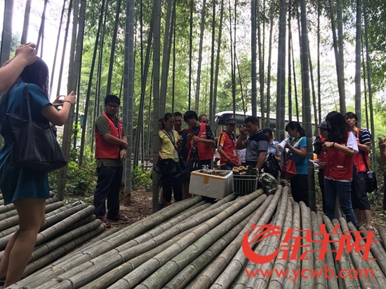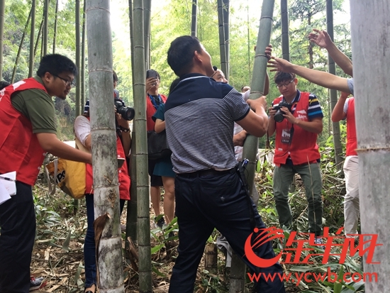 負責人向媒體記者展示綠竹酒砍伐過程。