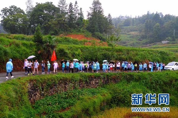 圖為采訪團深入湘西貧困村采訪。新華網 王瑩 攝