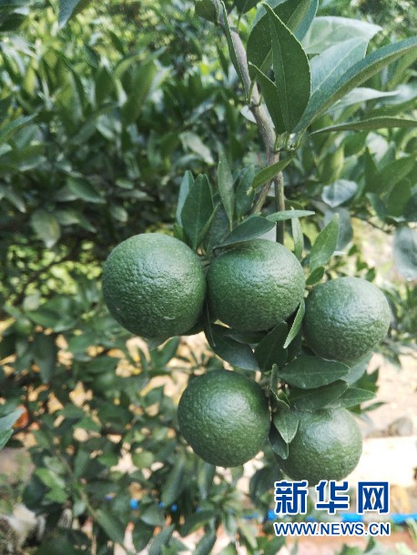 如今鄧攸發(fā)種的貢柑已滿樹掛果。新華網(wǎng)記者盧鑒攝