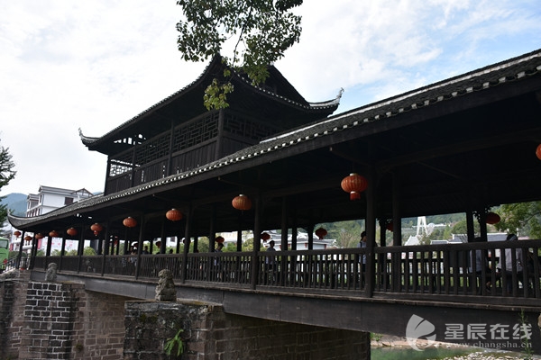 (賀龍橋是賀龍?jiān)娓甘壮藿ǖ?它是一座風(fēng)雨橋。賀廷宰熱心公益事業(yè),見玉泉河“奔流湍急,道路為!,行人十分不便,于是決定修橋。)