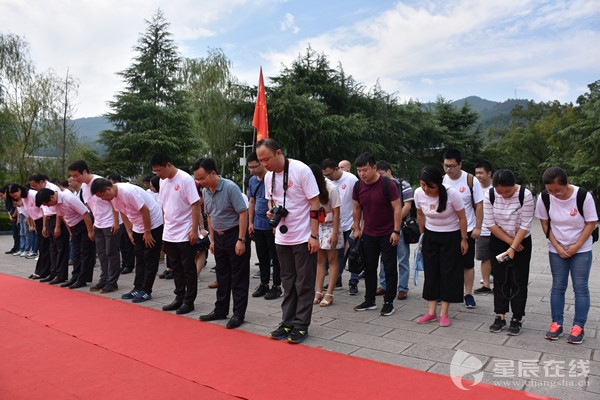 (“長征路上奔小康”網(wǎng)絡(luò)媒體“走轉(zhuǎn)改”大型主題采訪團(tuán)成員向賀龍銅像鞠躬致敬。)