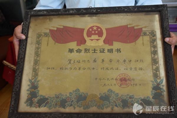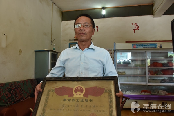 (村民賀興勝的祖父賀文玷追隨賀龍鬧革命,不幸壯烈犧牲。)