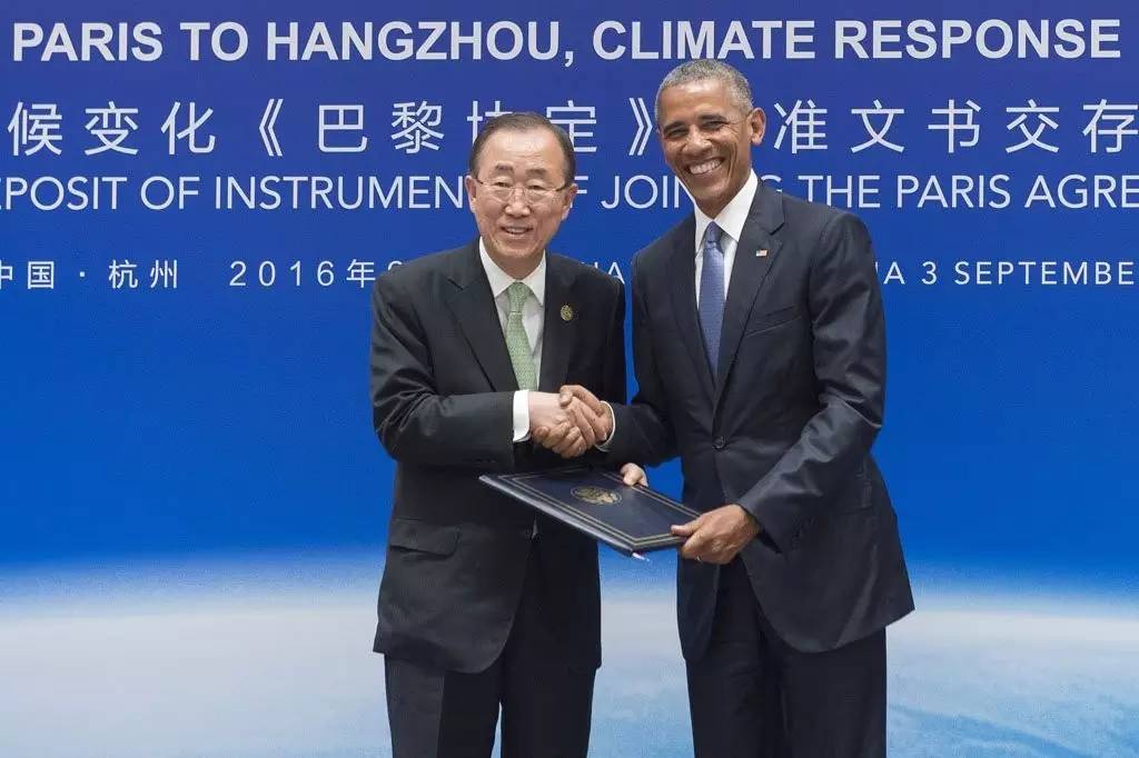 9月3日下午,國(guó)家主席習(xí)近平同美國(guó)總統(tǒng)奧巴馬、聯(lián)合國(guó)秘書(shū)長(zhǎng)潘基文在杭州共同出席氣候變化《巴黎協(xié)定》批準(zhǔn)文書(shū)交存儀式。