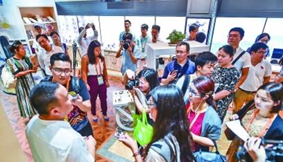 中外記者在杭州跨貿(mào)小鎮(zhèn)采訪。新華社發(fā)