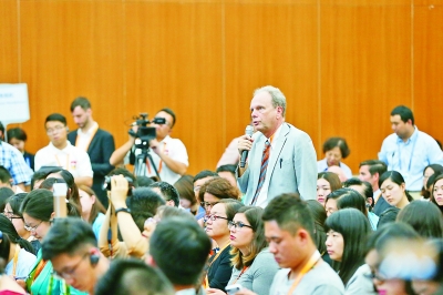 外國(guó)記者在新聞發(fā)布會(huì)上提問(wèn)。本報(bào)記者 周官正攝/光明圖片