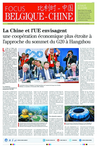 本報布魯塞爾9月4日電(記者劉軍)比利時法語區(qū)主流媒體《晚報》日前刊登了G20杭州峰會專版,題為“中歐將在G20杭州峰會加強經(jīng)濟合作”。專版刊登了習近平主席2014年出席澳大利亞布里斯班G20峰會和杭州G20峰會會場的大幅照片(上圖),刊發(fā)了對中國駐歐盟大使楊燕怡、歐盟委員會經(jīng)濟事務委員莫斯科維奇以及一些專家、學者和智庫人士的采訪。專版文章說,中國和歐盟均表達了在杭州峰會期間加強經(jīng)濟合作的強烈愿望。中國在世界經(jīng)濟遇到諸多困難時召開G20峰會,是對國際責任的擔當,相信中國會盡一切努力確保峰會取得圓滿成功,為世界經(jīng)濟復蘇注入新的活力。