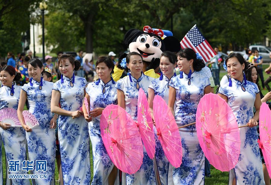 9月5日,在美國首都華盛頓白宮南側(cè)草坪,人們在中美旅游年活動上表演。