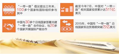 “一帶一路”倡議提出三年來,100多個(gè)國家和國際組織參與其中,中國與30多個(gè)沿線國家簽署共建“一帶一路”合作協(xié)議、與20多個(gè)國家開展國際產(chǎn)能合作,以亞投行、絲路基金為代表的金融合作不斷深化,一批有影響力的標(biāo)志性項(xiàng)目逐步落地。截至今年7月,中國對(duì)“一帶一路”相關(guān)國家的投資累計(jì)達(dá)511億美元。2015年,中國同“一帶一路”沿線國家雙邊貿(mào)易額突破萬億美元。從無到有、由點(diǎn)及面,“一帶一路”海陸統(tǒng)籌、東西互濟(jì)、面向全球的開放新格局漸次鋪開,建設(shè)速度和成果超出預(yù)期。