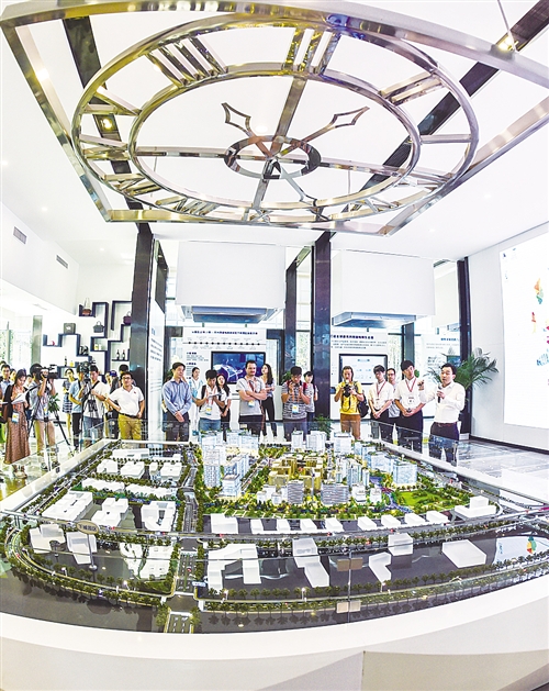 9月3日,中外媒體記者在杭州跨貿(mào)小鎮(zhèn)進行采訪,小鎮(zhèn)融互聯(lián)網(wǎng)產(chǎn)業(yè)、跨境電商及旅游購物于一體,有20多個國家和地區(qū)的主題館。 新華社記者 徐 昱攝