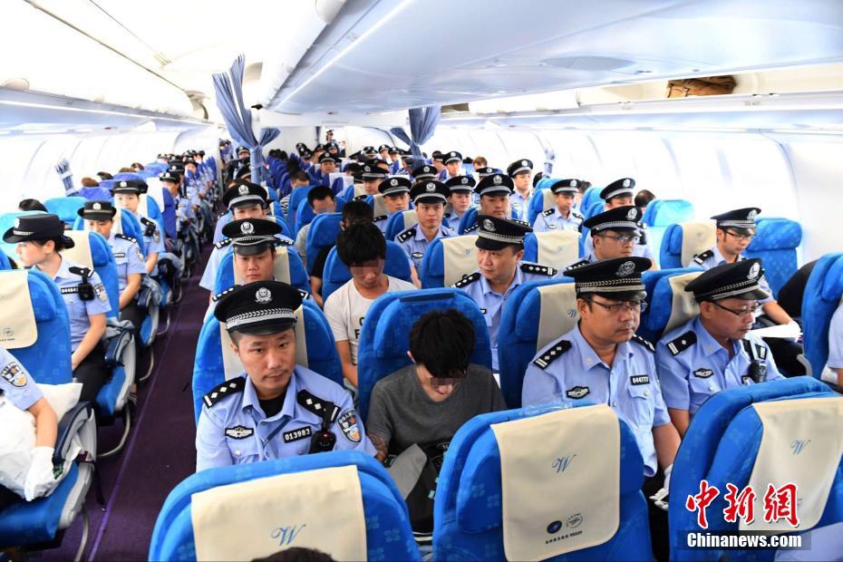 廣東省公安廳9月8日通報,9月2日,在中國公安部指揮協(xié)調(diào)下,該廳組織廣州警方出動300名警力,乘坐兩架南方航空公司的民航包機將129名電信詐騙嫌疑人(其中大陸籍51名、臺灣籍78名)從亞美尼亞帶回廣州,涉及中國10多個省區(qū)市的“颶風(fēng)20”號跨境電信網(wǎng)絡(luò)詐騙案成功告破,本案也是中國大陸從國外帶回臺灣籍電信網(wǎng)絡(luò)詐騙犯罪嫌疑人數(shù)最多的案件。中新社記者 景國民 攝