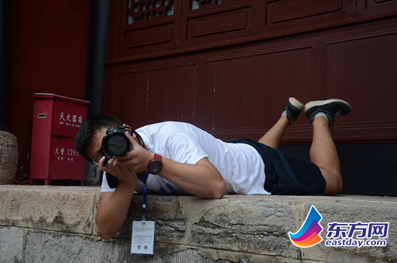 張琮脯趴在地上取景
