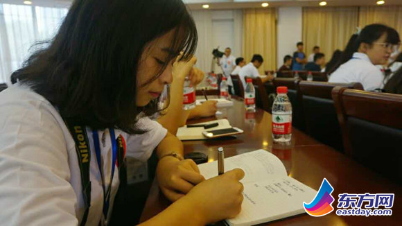 娃娃臉大眼睛的張琮脯是貴州人,今年20歲,就讀于貴州省警察學(xué)院大三年級,同時也是中國(貴州)高校傳媒聯(lián)盟的副主席。站在人群中,張琮脯就很顯眼,1米8幾的大高個笑起來憨憨的,非常有安全感。他會用自稱很“蹩腳”的英語和外國記者“手舞足蹈”地交流,把外國友人逗得哈哈大笑;也會在忽然下雨時將僅有的雨傘推給女同學(xué),自己一個人走在路上;還會管中央網(wǎng)信辦的帶隊老師叫“王大姐”,與她暢聊自己關(guān)于新聞媒體報道中黨性和人民性的想法……大家對張琮脯都稱贊有加:“他非常非常非常會照顧人!”儼然,一個“暖男”擔(dān)當(dāng)。