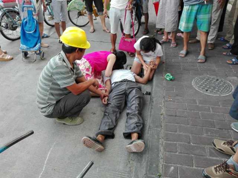 暈倒的男子名叫傅文滿,是一名湖南籍的建筑工人,那天早晨,他像往常一樣推著斗車去工地上班,沒想到在經(jīng)過廣東佛山禪城文沙路時(shí),突然覺得眼前一黑,倒地昏迷不醒。正趕著去單位上班的劉茂英看到路邊圍了一群人,但周圍并沒有車禍發(fā)生的跡象,她的第一預(yù)感就是可能有人突發(fā)疾病,走近一看,果不其然!