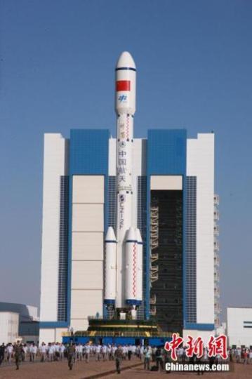 中國(guó)天宮二號(hào)空間實(shí)驗(yàn)室將于9月15日22時(shí)04分發(fā)射。圖為天宮二號(hào)空間實(shí)驗(yàn)室與長(zhǎng)征二號(hào)F T2火箭已垂直轉(zhuǎn)運(yùn)至發(fā)射塔架。 孫浩 攝