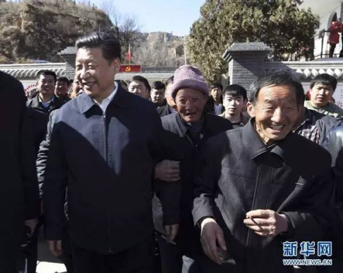2015年春節(jié)前夕,習(xí)近平赴陜西調(diào)研。這是2015年2月13日,習(xí)近平在延安市延川縣文安驛鎮(zhèn)梁家河村同村民們?cè)谝黄稹?/p>