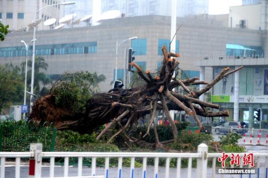 資料圖:廈門街頭隨處可見被“莫蘭蒂”臺風連根拔起的大樹。在“莫蘭蒂”影響下,廈門有35萬棵行道樹倒伏,房屋倒塌損壞113處。 中新社記者 王東明 攝