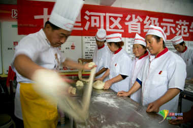 建在村委會大院內(nèi)的牛肉面技能培訓(xùn)班,正在參加培訓(xùn)的村民們,正跟著專業(yè)的拉面師傅學(xué)習(xí)牛肉面制作技能,經(jīng)過一個月的培訓(xùn)后,這些曾經(jīng)只能通過土地獲得收入的村民,將真正掌握一技之長。