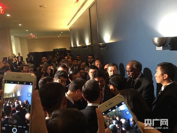 央廣網(wǎng)紐約9月21日消息(記者馬喆)當?shù)貢r間21日上午,李克強在紐約聯(lián)合國總部出席第71屆聯(lián)大一般性辯論并發(fā)言?偫戆l(fā)言結束后,日本首相安倍晉三在會場外過道處走上前與李克強握手交談。