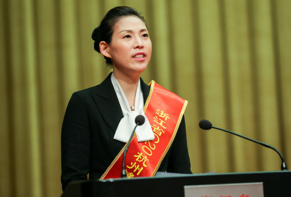 ↑先進個人代表顏穎華在臺上發(fā)言。