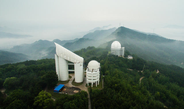 7月15日拍攝的郭守敬巡天望遠(yuǎn)鏡(左)。新華社記者 李響 攝