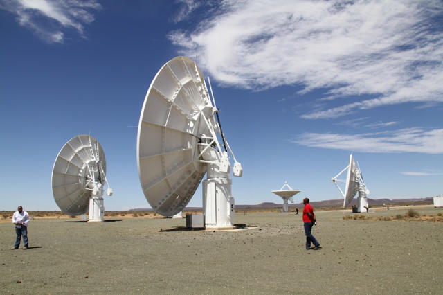 平方公里陣射電望遠(yuǎn)鏡項(xiàng)目由兩套先進(jìn)的望遠(yuǎn)鏡設(shè)備構(gòu)成,一套是位于南部非洲的蝶形天線陣,另一套是位于澳大利亞的低頻孔徑陣列。蝶形天線陣由200面拋物面天線組成,看起來(lái)像“衛(wèi)星鍋蓋”;低頻孔徑陣列由超過(guò)10萬(wàn)個(gè)偶極天線組成,看起來(lái)像“電視天線”。它們將被科學(xué)家用來(lái)觀測(cè)宇宙“黑暗時(shí)代”,并搜尋地外文明的蛛絲馬跡。