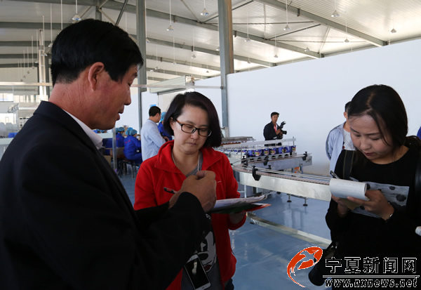 寧夏旺泉食品飲料有限公司總經理黃思軍向采訪團介紹情況