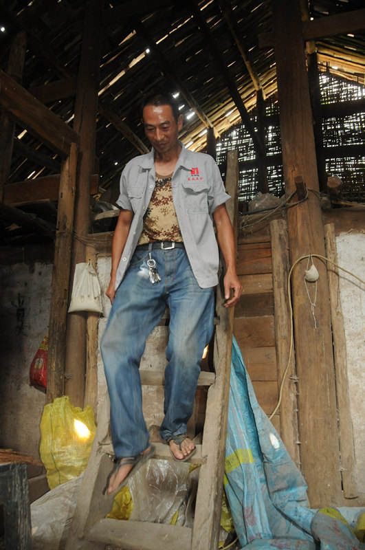 一家四口的貧困戶(hù),擠在一座住了三十多年的吊腳樓里,四面透風(fēng),家里沒(méi)有任何像樣的家具,坡地上種的苞谷,一年的收成還不夠喂豬。