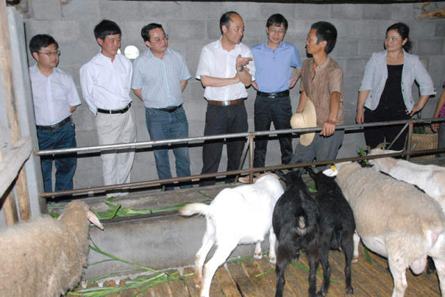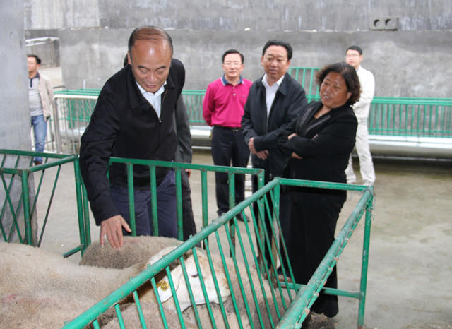 姜仕坤到三合種羊場(chǎng)調(diào)研。(資料照片)