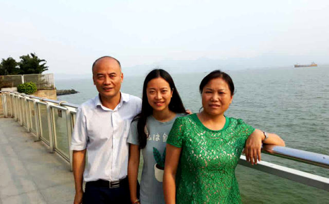 2015年,姜仕坤送女兒上大學(xué),全家在深圳留影。(資料照片)