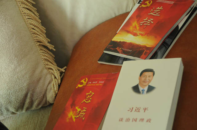 在姜仕坤宿舍,沙發(fā)扶手上放著《習(xí)近平談治國(guó)理政》、《選擇》、《忠誠(chéng)》幾本書(shū)(7月24日攝)。新華社記者 李春惠 攝