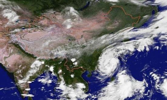 臺風(fēng)“鲇魚”登陸前后的衛(wèi)星云圖。
