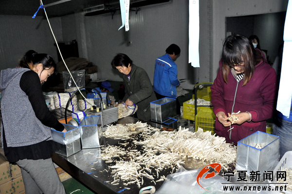 將南方的食用菌培育引進到彭陽,是當?shù)卣l(fā)展產(chǎn)業(yè)脫貧的創(chuàng)新之舉。在彭陽縣福泰菌業(yè)有限責任公司的分撿車間里,一座用杏鮑菇堆成的“小山”周圍,幾名工人正迅速地分撿裝袋,做真空處理后打包裝箱。據(jù)福泰公司經(jīng)理祁登榮介紹,目前企業(yè)培育食用菌類的生產(chǎn)技術已經(jīng)成熟,帶動周邊農(nóng)戶參與食用菌生產(chǎn),實現(xiàn)企業(yè)與農(nóng)戶雙贏是園區(qū)建設的最終目的。