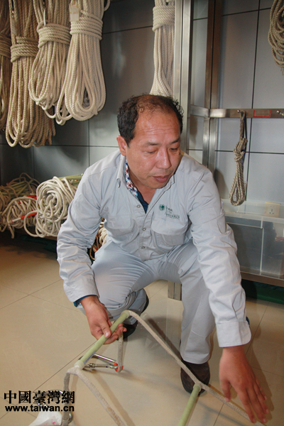 趙文武手拿工作工具,向記者講述工作過程。(中國臺灣網(wǎng) 李帥 攝)