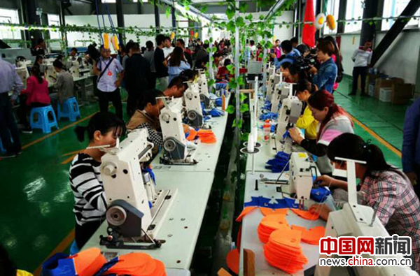 圖為貴州省甕安縣返鄉(xiāng)農(nóng)民工創(chuàng)業(yè)園區(qū)內(nèi)的制鞋車間。中國網(wǎng)記者 張蕓蕓 攝