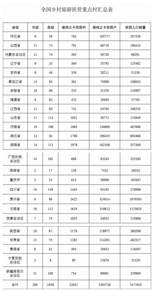 國(guó)家旅游局、國(guó)家發(fā)展改革委、國(guó)土資源部、環(huán)境保護(hù)部、住房城鄉(xiāng)建設(shè)部、交通運(yùn)輸部、水利部、農(nóng)業(yè)部、國(guó)家林業(yè)局、國(guó)務(wù)院扶貧辦、國(guó)家開發(fā)銀行、中國(guó)農(nóng)業(yè)發(fā)展銀行近日共同制定了《鄉(xiāng)村旅游扶貧工程行動(dòng)方案》,力爭(zhēng)未來五年,通過發(fā)展鄉(xiāng)村旅游,帶動(dòng)全國(guó)25個(gè)。▍^(qū)、市)2.26萬個(gè)建檔立卡貧困村、230萬貧困戶、747萬貧困人口實(shí)現(xiàn)脫貧。