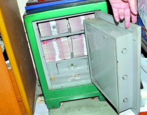 警方在東莞破獲一宗地下錢莊案時,從一個保險箱中繳獲滿滿一箱涉案現(xiàn)金。