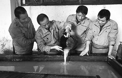 “一開始當撈紙工,我前兩個月沒完成任務(wù)。只掙到十幾塊錢,基本等于白干。宣紙廠采取計件工作制,每天工作定額是800張合格紙,只有下限,不設(shè)上限。因為我技術(shù)動作不熟練,廢品率就高。要么是從水槽撈出的紙張厚薄不均(導致分量不夠標準),要么是紙上有水皺(皺褶)、水泡(鼓泡)或水洞(窟窿)。出師不利,我才知道,跟以前自己下地種田插秧不同,撈紙可不是那么容易的事。這里面還真有些高深的門道呢!