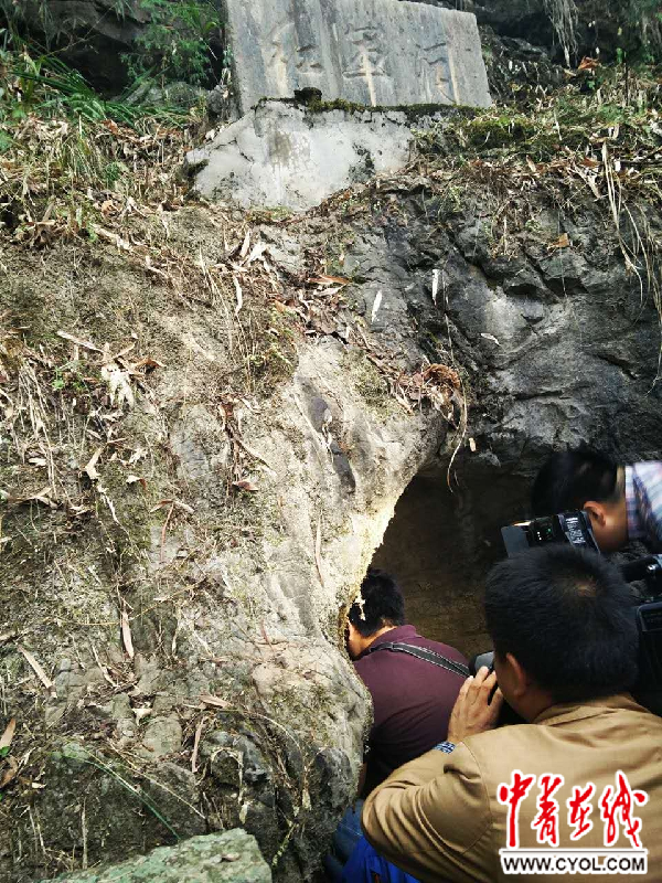 采訪團(tuán)成員在紅軍洞