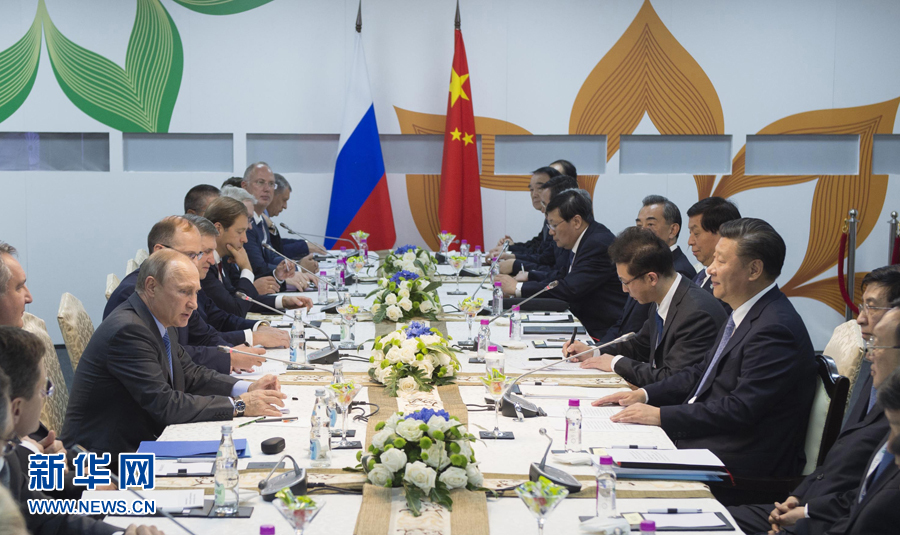 10月15日,國家主席習近平在印度果阿會見俄羅斯總統(tǒng)普京。新華社記者謝環(huán)馳攝