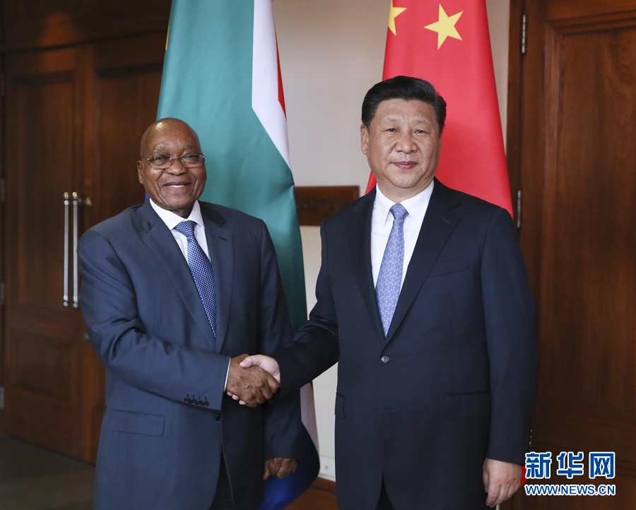 10月15日,國家主席習(xí)近平在印度果阿會見南非總統(tǒng)祖馬。新華社記者蘭紅光攝