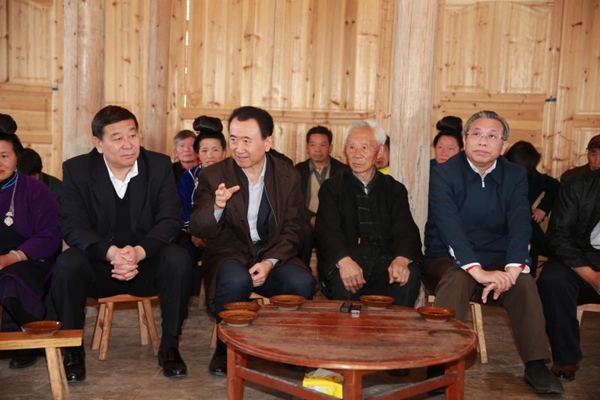 2014年12月,王健林決定對口幫扶貴州省丹寨縣整體脫貧,王健林本人和公司先后十多次赴丹寨調(diào)研當?shù)刎毨闆r和扶貧項目,結(jié)合丹寨實際,確定職業(yè)技術(shù)學院、旅游小鎮(zhèn)、扶貧專項基金三大扶貧項目,總投入扶貧資金14億元,于2016年初開始實施。丹寨職業(yè)技術(shù)學院總投資3億元,建筑面積5萬平方米,可同時容納2000名學生,主要招收丹寨籍學生,每年擇優(yōu)錄取50%畢業(yè)生到萬達集團就業(yè)。丹寨旅游小鎮(zhèn)總投資6億元,將打造成貴州獨具特色的民族旅游名片,不僅創(chuàng)造經(jīng)濟效益,而且將新增2000至3000個永久就業(yè)崗位,緩解丹寨縣城就業(yè)難的問題。萬達專項扶貧基金規(guī)模5億元,由萬達投資公司理財,每年保底5000萬元收益,無償分配給丹寨縣產(chǎn)業(yè)扶貧無法惠及的1萬名孤、殘、重病等特殊貧困人群。萬達丹寨扶貧產(chǎn)業(yè)、教育、基金并舉,短期、中期、長遠兼顧,對癥下藥,創(chuàng)造中國精準扶貧新模式,兩年實現(xiàn)丹寨縣貧困人口全部脫貧,所有項目2017年投入運營后,將使丹寨縣整體經(jīng)濟發(fā)生較大改變,實現(xiàn)可持續(xù)發(fā)展,永久擺脫貧困。