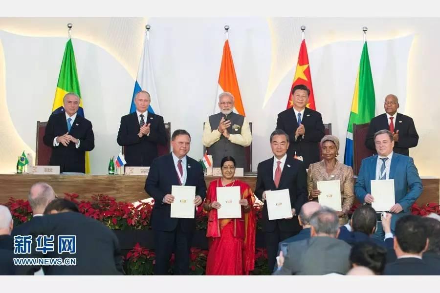 16日,金磚國(guó)家領(lǐng)導(dǎo)人第八次會(huì)晤在印度果阿舉行。中國(guó)國(guó)家主席習(xí)近平、印度總理莫迪、南非總統(tǒng)祖馬、巴西總統(tǒng)特梅爾、俄羅斯總統(tǒng)普京出席。5國(guó)領(lǐng)導(dǎo)人圍繞“打造有效、包容、共同的解決方案”主題,就金磚國(guó)家合作及其他共同關(guān)心的國(guó)際和地區(qū)問(wèn)題深入交換看法,達(dá)成廣泛共識(shí)。