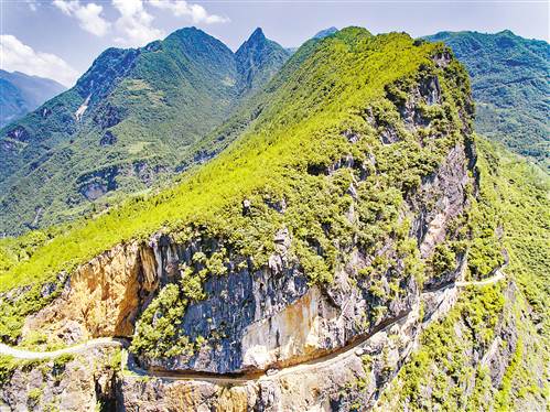 10月7日,巫溪縣蘭英鄉(xiāng)蘭英村,海拔近千米的周家坪老虎嘴“天路”。 記者 謝智強 攝