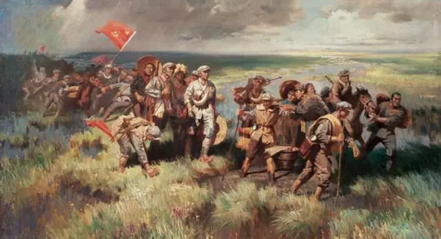 哪怕以皮帶充饑,戰(zhàn)士們?nèi)员3种锩鼧酚^主義,終于挺進(jìn)陜北,勝利會師。