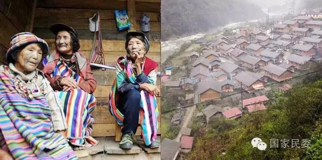 獨龍族婦女和獨龍族傳統(tǒng)民居。