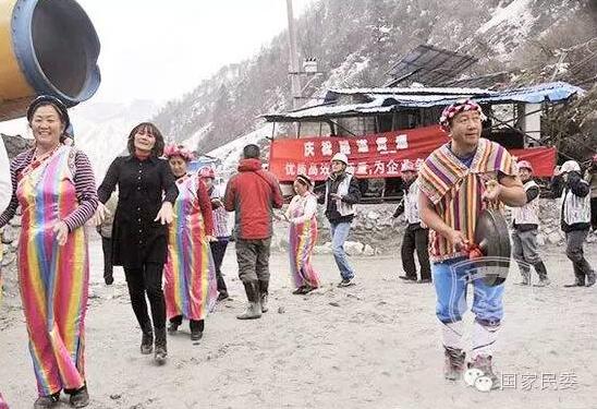 獨龍江公路隧道貫通,獨龍族群眾載歌載舞歡慶。