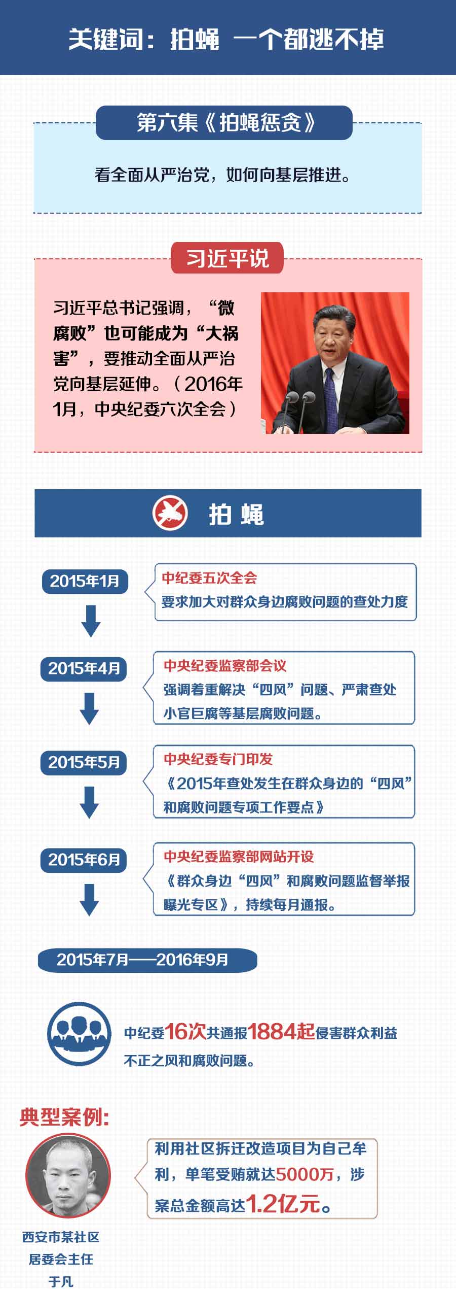 第六集《拍蠅懲貪》呈現(xiàn)的是中央如何加大力度整治群眾身邊的“蠅貪”。