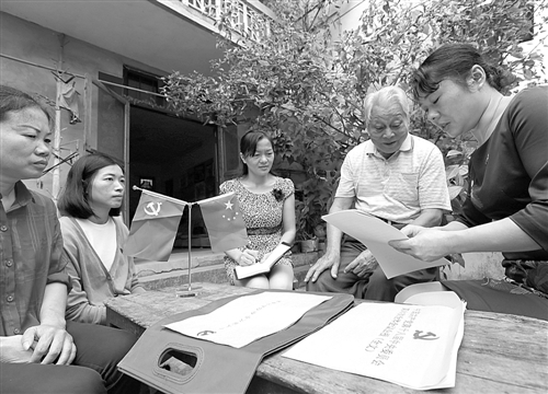 左圖 10月28日,江西萬(wàn)安縣城東社區(qū)干部正在老黨員許寅賓家中開(kāi)展黨的十八屆六中全會(huì)精神宣講活動(dòng)。
