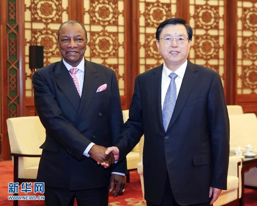 11月2日,全國人大常委會委員長張德江在北京人民大會堂會見幾內(nèi)亞總統(tǒng)孔戴。 新華社記者丁林攝