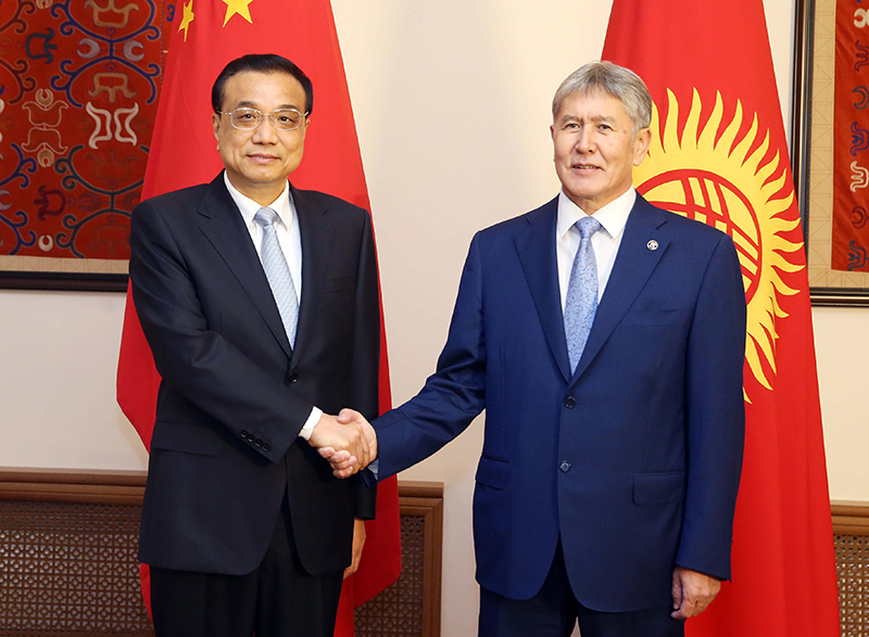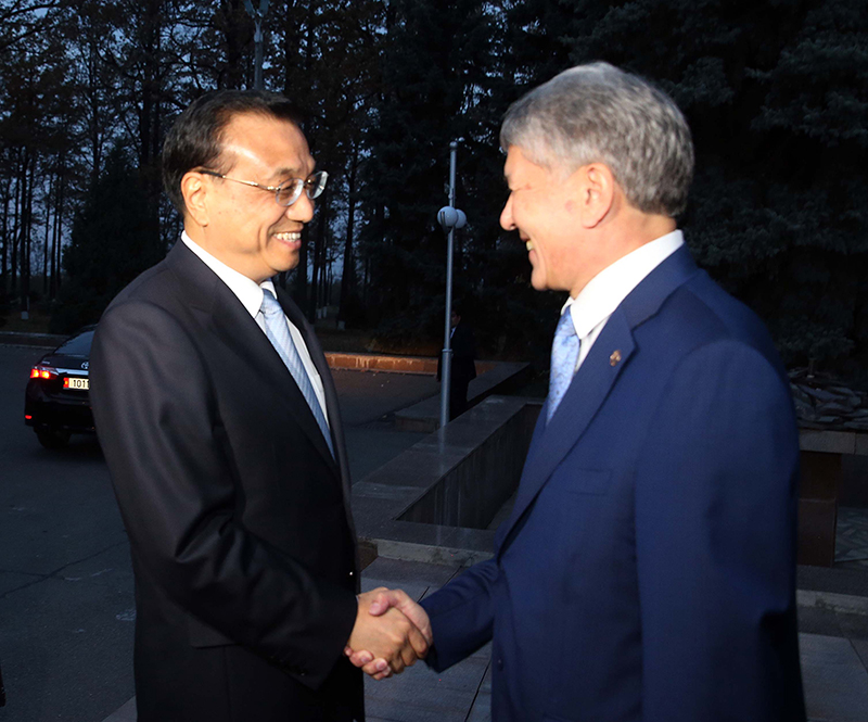 國務(wù)院總理李克強當(dāng)?shù)貢r間2日晚在比什凱克總統(tǒng)官邸會見吉爾吉斯斯坦總統(tǒng)阿坦巴耶夫。
